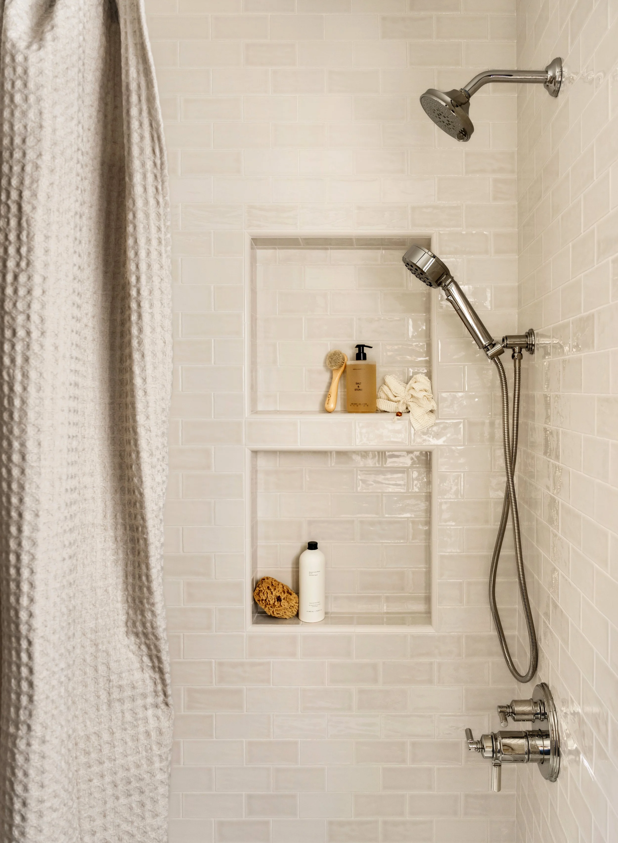 Thoughtful detailing and rich wood tones lend this transitional home a warm, inviting character. Aged brass accents and classic profiles elevate the natural stone countertops, while soft, creamy paint colors add an easy sense of comfort. By blending the cozy charm of traditional English design with clean contemporary finishes, this home becomes a fresh take on a timeless cottage perfect for everyday living.