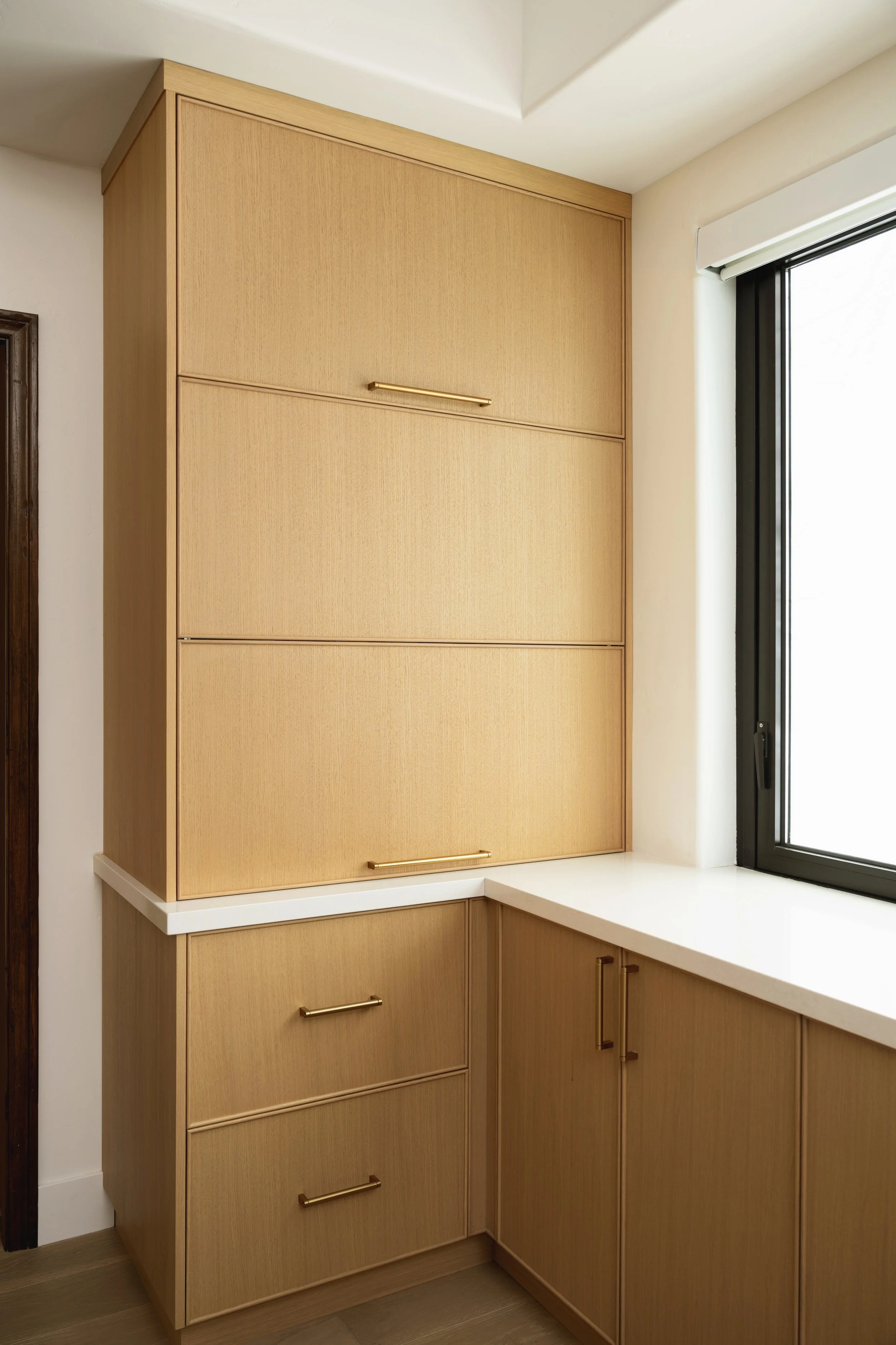 White oak, neutral finishes, and clean lines star in this Scandinavian-inspired, transitional kitchen. Handcrafted tile and rift sawn white oak add richness without overwhelm, while the cabinetry inserts throughout infuse function and ease to the everyday hustle and bustle.